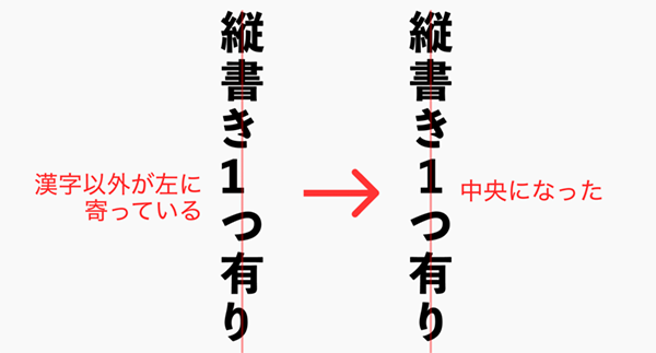 左揃えのまま入力すると、一部の文字(主にひら・カタ・英数字)が偏って表示されてしまいます。文字揃えを中央揃えにしておきましょう。
