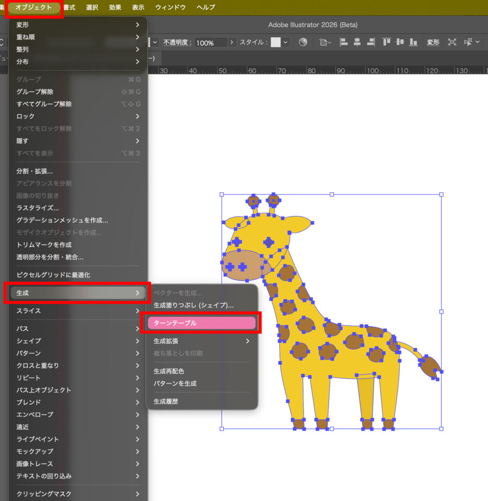 Illustratorのターンテーブルは、1つの2Dオブジェクトから別角度のビューを生成できるBeta機能です。