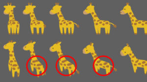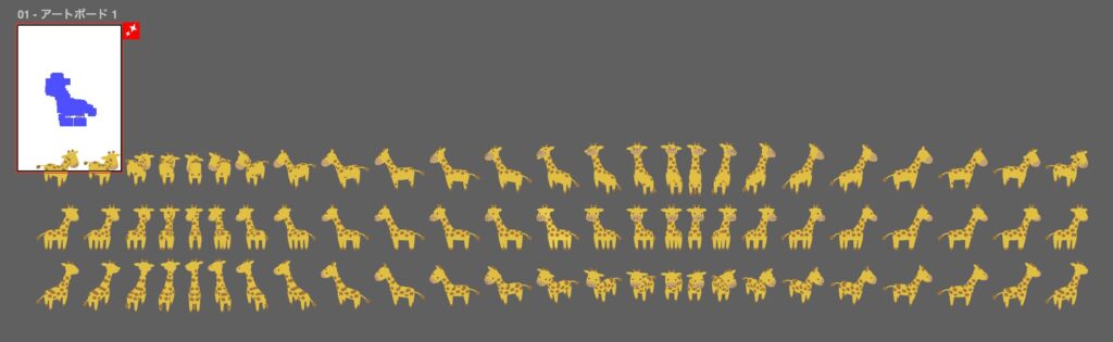 一つしか無いイラストから生成される74個の結果の精度は、なかなかのものでした。一部、キリンの背中の模様は、アングルによってはかなり乱れました。背中の茶色の斑点が縞模様のような描画になってしまいました。シマウマやトラ猫なら繋がってもOKなのですが…。
