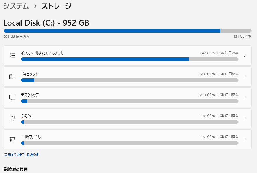 今回は、Windows 11 Home環境でCドライブの容量が何をしても減らない問題に直面し、その原因の特定と解消を行ったので、備忘録としてまとめます。