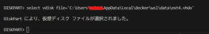 select vdisk file='C:\Users\XXXX\AppData\Local\docker\wsl\data\ext4.vhdx'