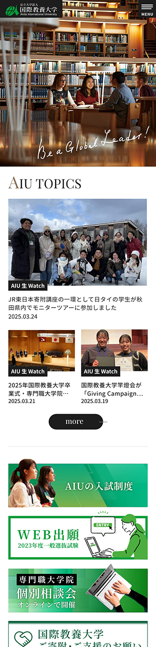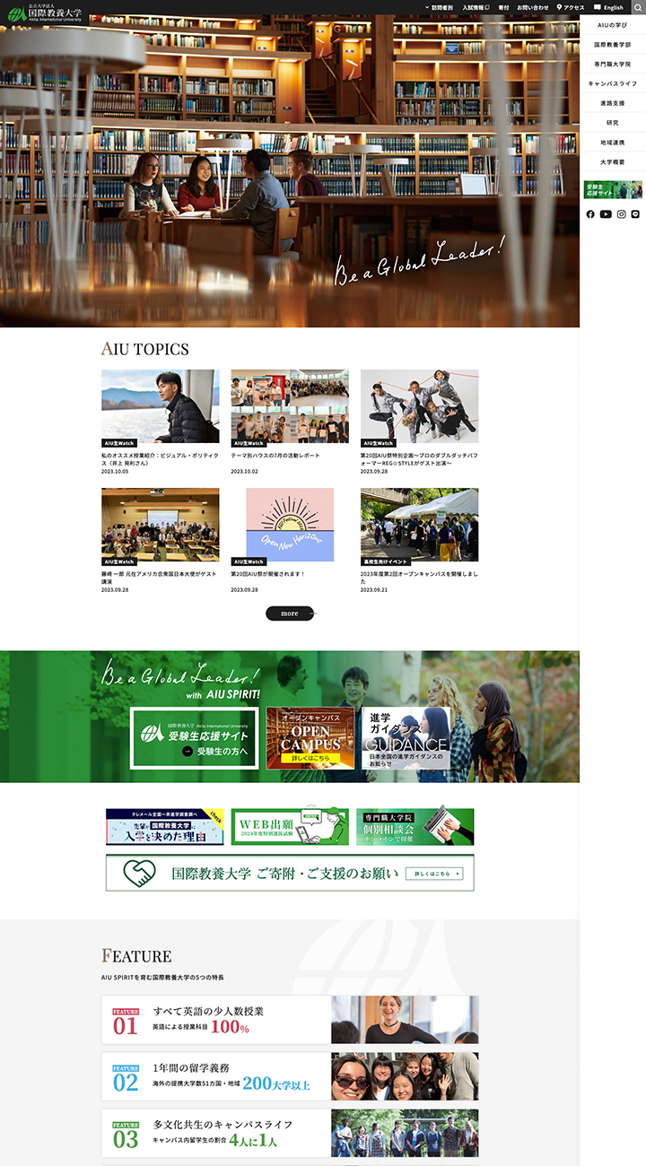 公立大学・国際教養大学(AIU)のWebサイトリニューアルを設計・実装。